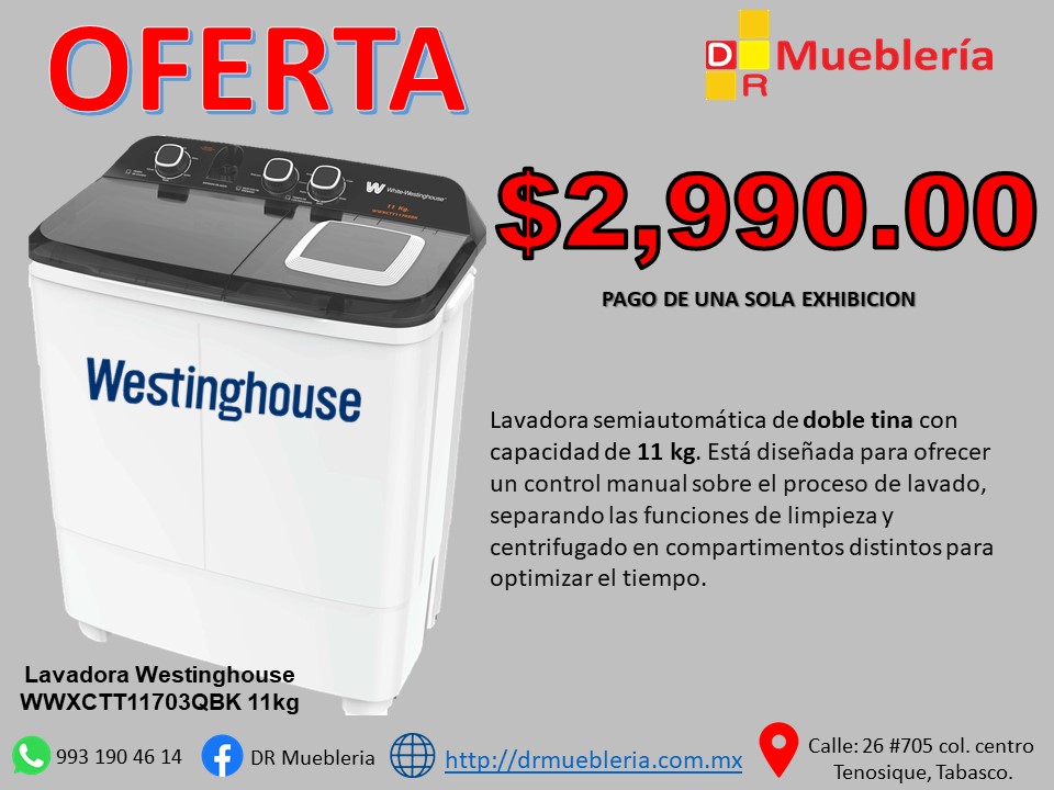 s una lavadora semiautomática de doble tina con una capacidad de 11 kg. Este modelo destaca por su diseño de carga superior que permite lavar y centrifugar de manera simultánea en compartimentos separados.